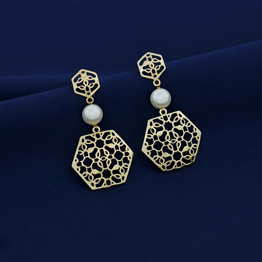 Golden Dual Hexagon Pearl Earring